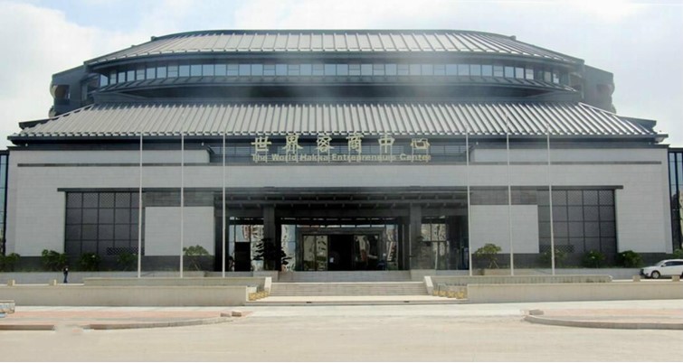 世界客商中心位于广东梅州市梅江区芹洋半岛品牌战略发展区,是世界客商大会永久会址,全球客商的精神家园,也是全球客家商界人士崇商论道、联谊合作的重要平台。该建筑主体在设计时,主要以传统客家围屋意象为出发点,提炼吸收了客家传统建筑元素和符号,并采用了现代经典建筑对称布局,最终想要呈现出的是一个既传承了客家建筑文化,又能体现新时代要求的建筑。